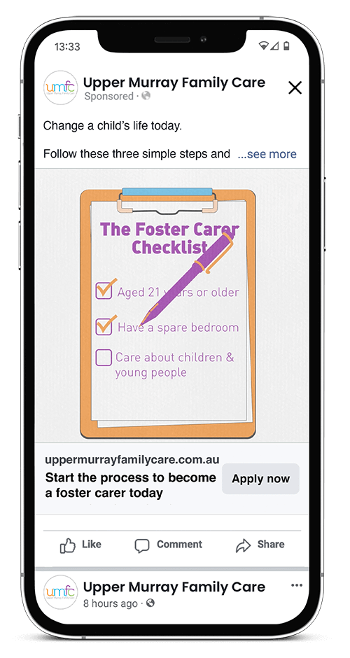 Upper Murray Family Care (Victoria, Australia) needed to recruit and educate new foster carers across their local region, to combat this shortage.